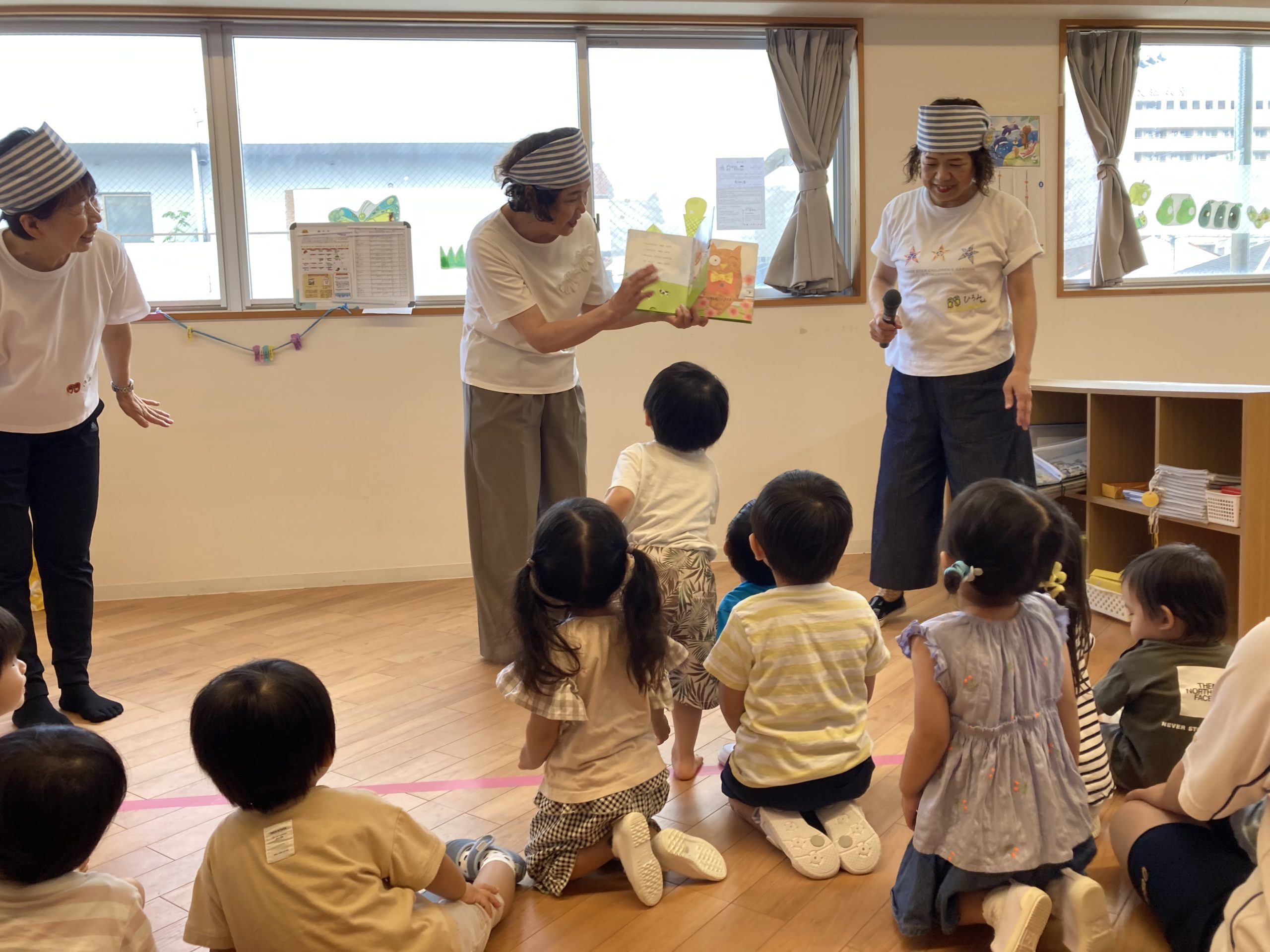 絵本の読み聞かせ、体操、朗読、ペープサート、手遊び。。。など