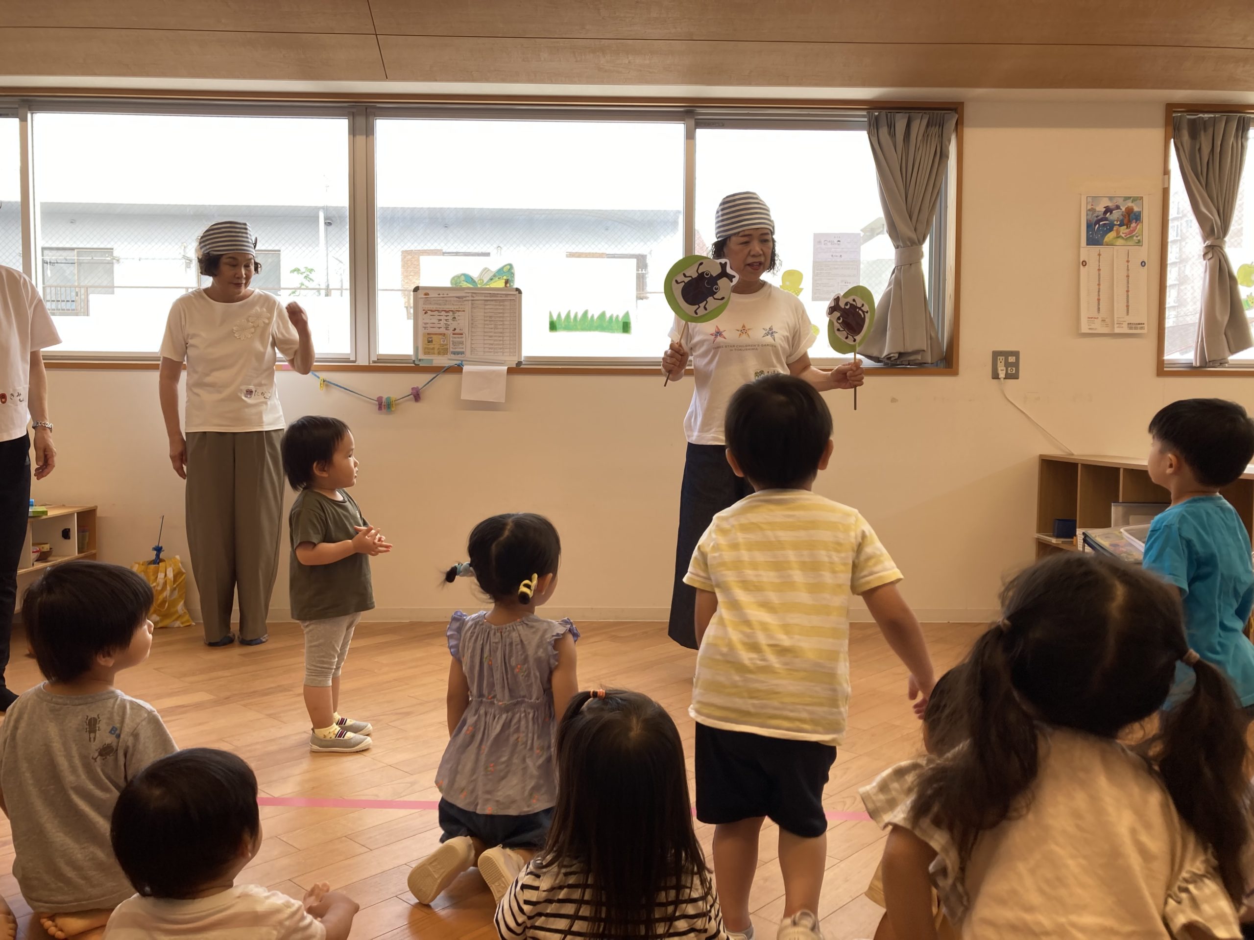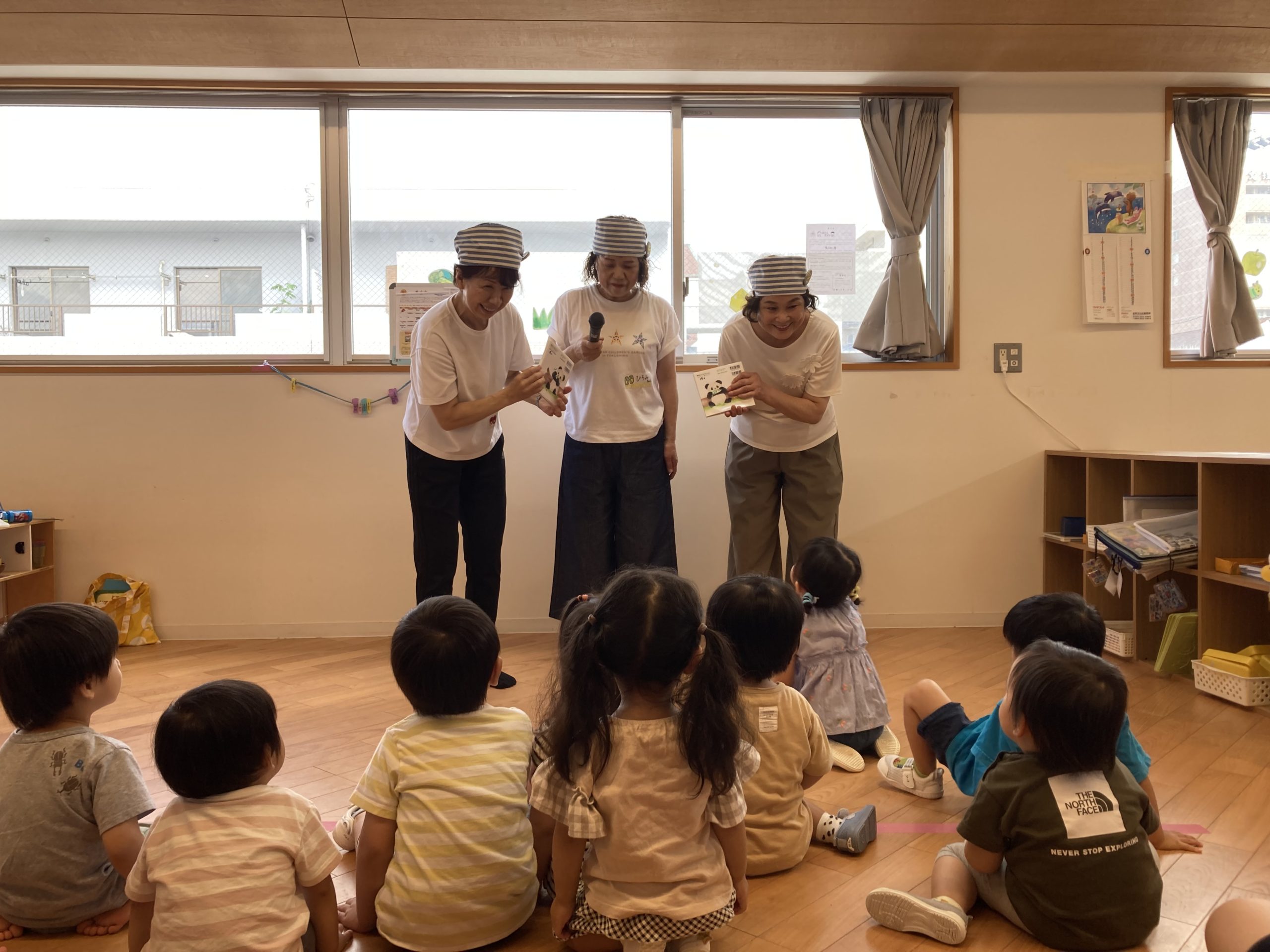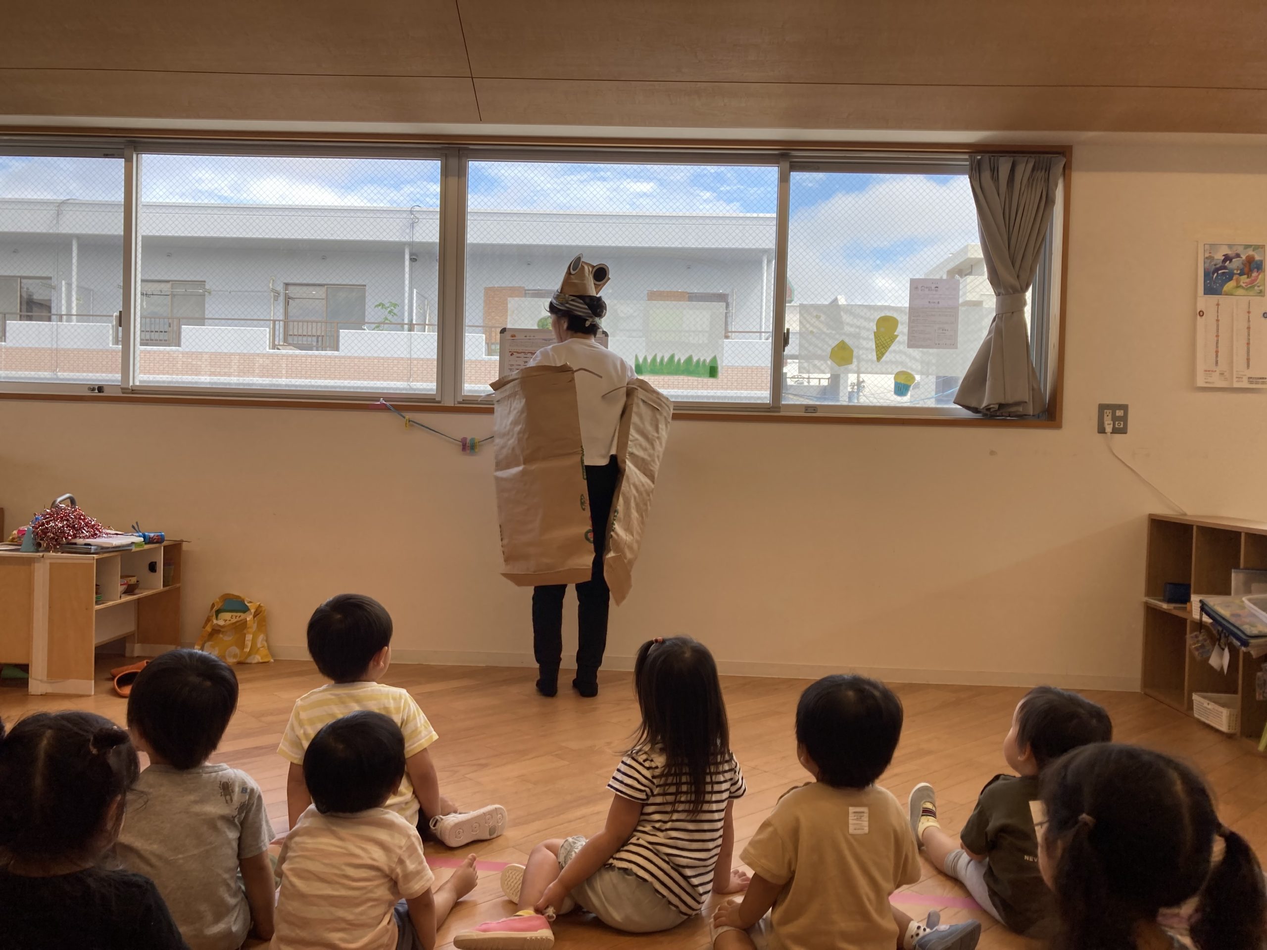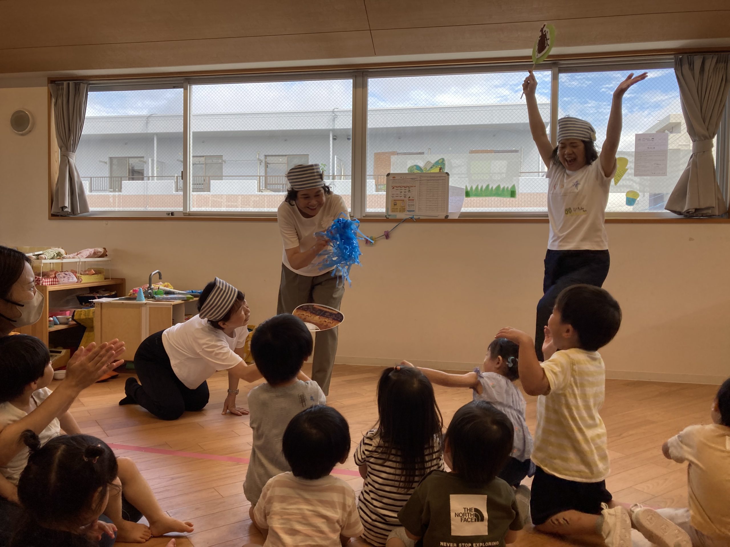 02クラス、一時預かり、05クラスの子ども達とお楽しみ会をしてくださいました。