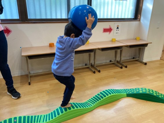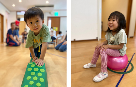 お子様が楽しみながら身体を動かし、全身にいろいろな刺激を入れることで身体能力の向上を行っています。