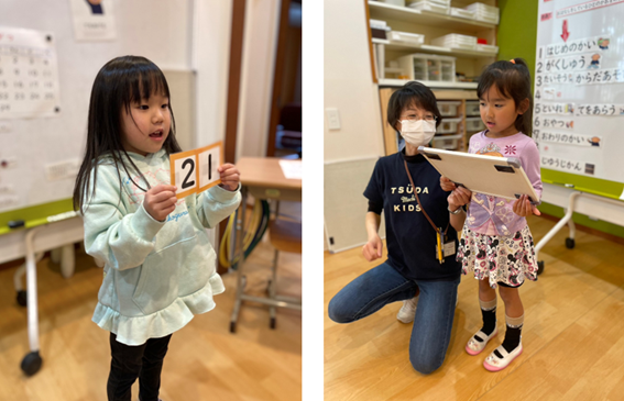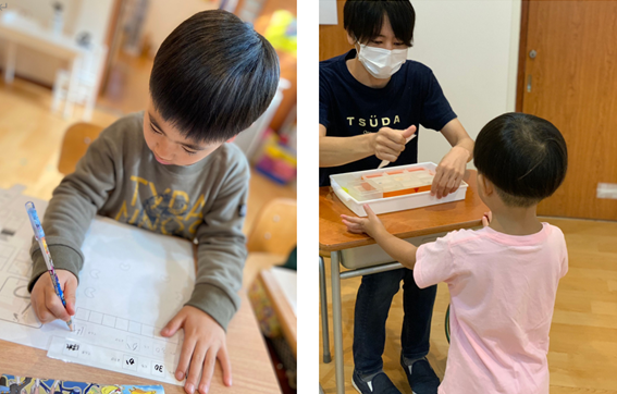 課題が終わると一つずつ確認し”できた!”を一緒に喜んでいます。お子様の「次はこれをしてみたい」を引き出します。
